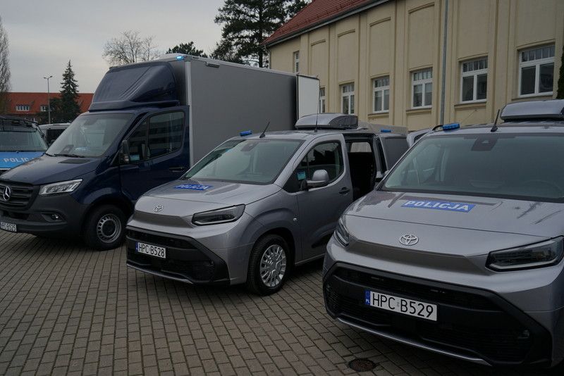- Dziesięć samochodów Toyota Proace przystosowanych do przewozu dwóch funkcjonariuszy i dwóch psów w boksach, przeznaczonych dla komend w Aleksandrowie Kujawskim, Brodnicy, Chełmnie, Grudziądzu, Nakle nad Notecią, Radziejowie, Sępólnie Krajeńskim, Świeciu, Wąbrzeźnie oraz Wydziału Prewencji Komendy Wojewódzkiej Policji w Bydgoszczy.