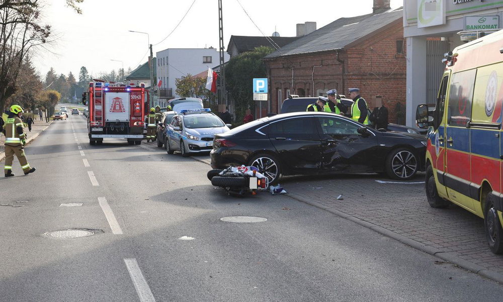 Kierowca Opla nie ustąpił pierwszeństwa motocykliście na ulicy Kościuszki w Radziejowie. 52-latek trafił do szpitala. Policja wyjaśnia okoliczności zdarzenia.